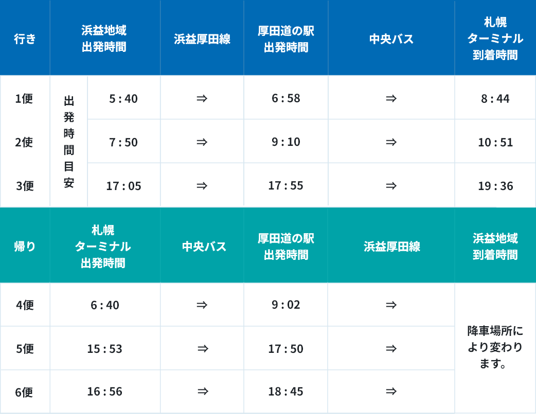 A浜益地域線は出発の20分前まで。浜益厚田線は出発の1時間前まで (1便は前日の19時まで、最終便は出発の2時間前まで)にお願いします。